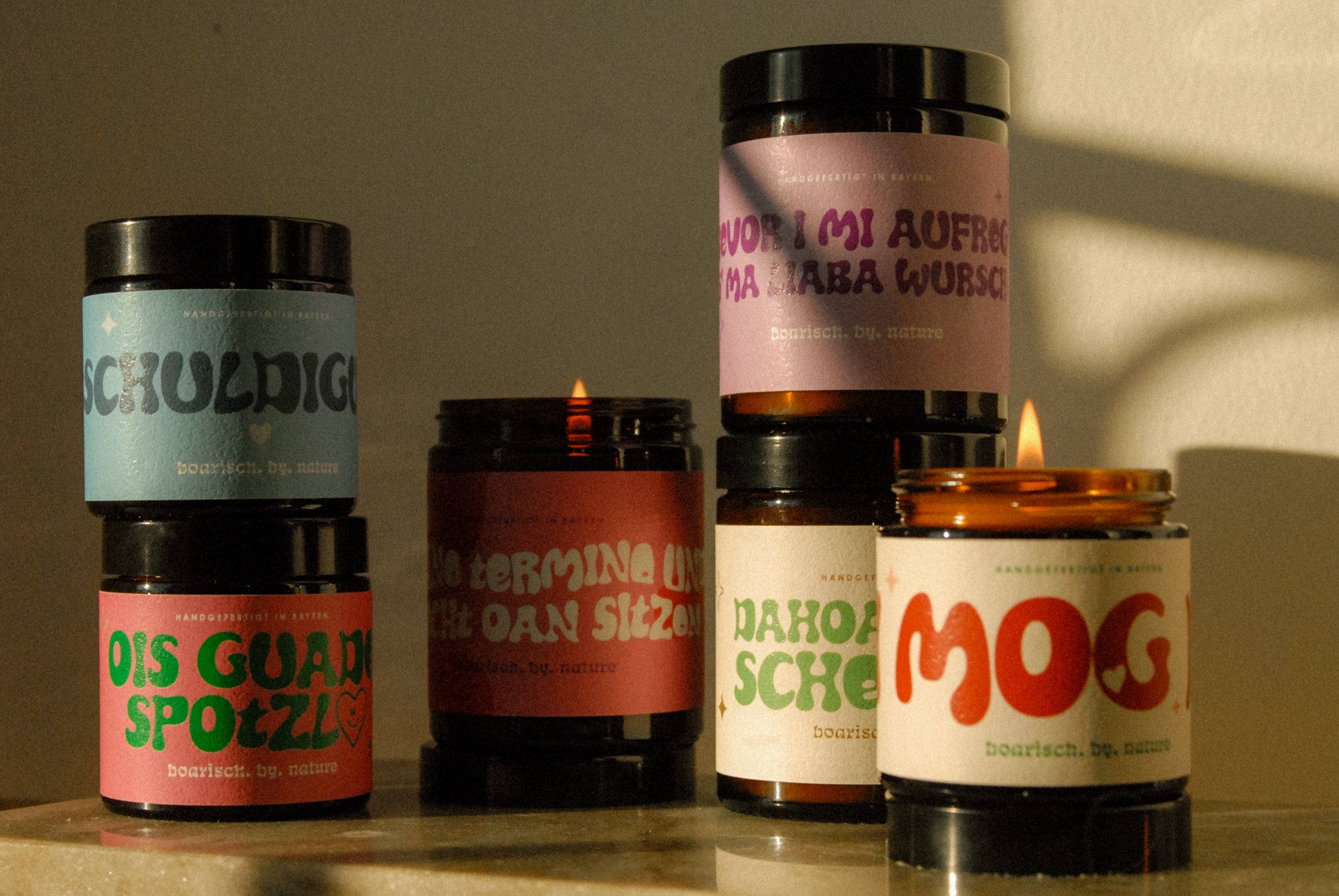 In Garmisch-Partenkirchen wird jede Kerze von Hand gegossen - mit dem Augenmerk auf Nachhaltigkeit: Das Rapswachs und die Baumwolldochte stammen aus Deutscher Produktion. Besonders stolz bin ich auch auf die Zusammenarbeit mit der Druckerei im Chiemgau - hier entstehen die wundervollen Etiketten, die die Kerzen so einzigartig machen.