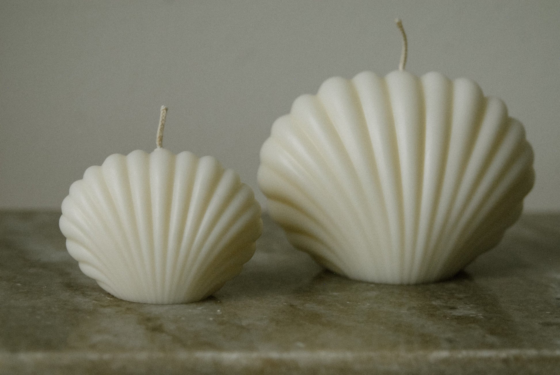 Das Muschelkerzen Set besteht aus einer kleinen und einer großen Muschel in cremeweiß mit einer glatten und glänzenden Oberfläche. Weitere Farben kommen bald ;)